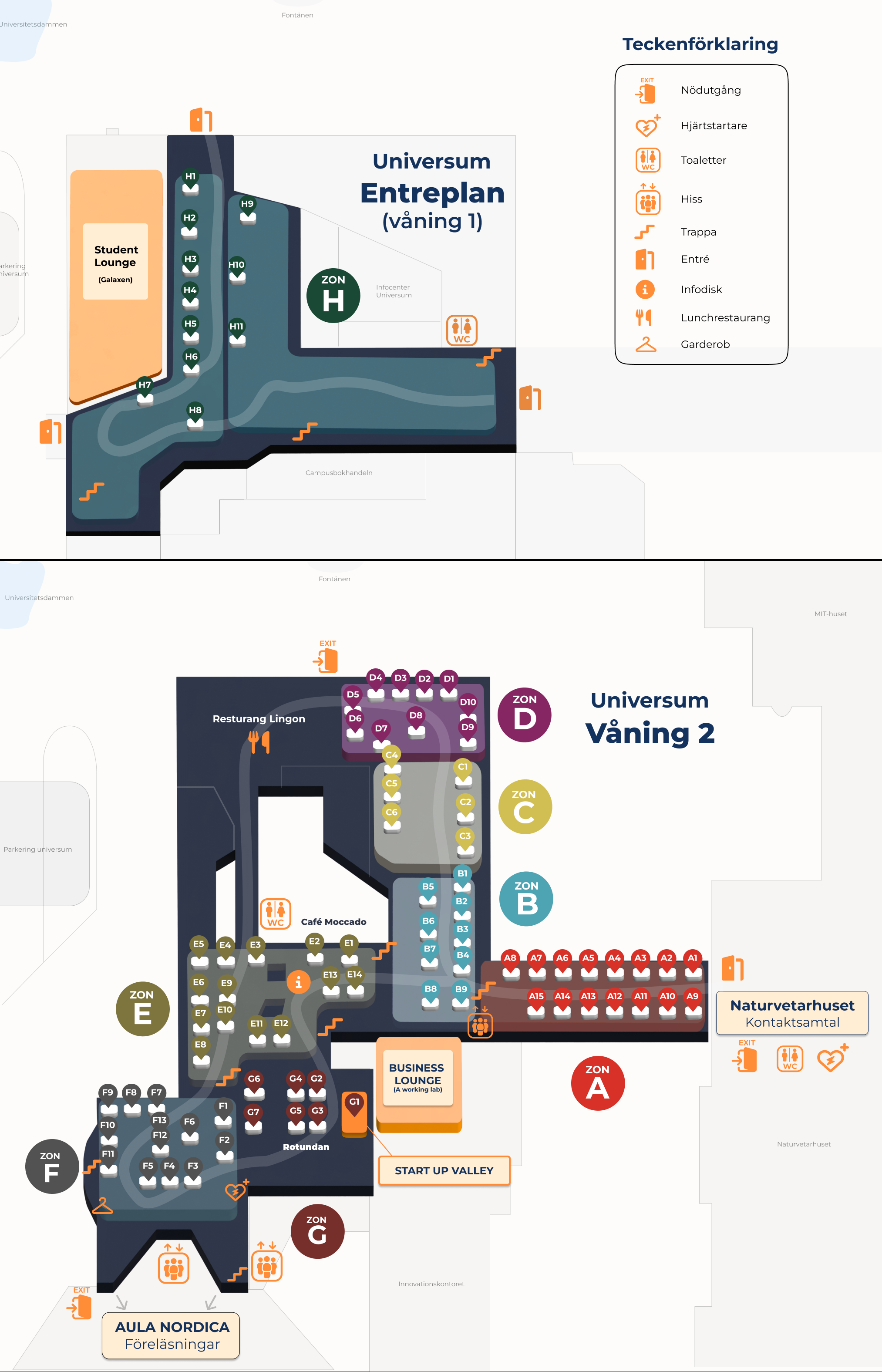 Här och bara här hittar du en karta över Uniadens mässområde. Kartan visar bland annat vart alla företag står, student loungen och startup valley.